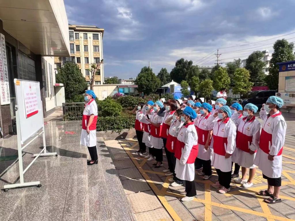 接着,永仁县红十字会对我院进行授牌及授旗仪式,肖喜萍院长带领全体志愿服务队员宣誓。