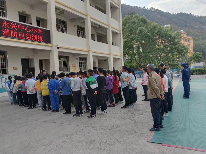 为进一步加强学校师生的消防安全意识,提高教师应对突发火情及组织学生安全疏散逃生的能力,全面筑牢校园防火墙。近日,永仁县“蓝焰守护”消防宣传服务队深入校园开展消防安全知识培训及应急演练活动。