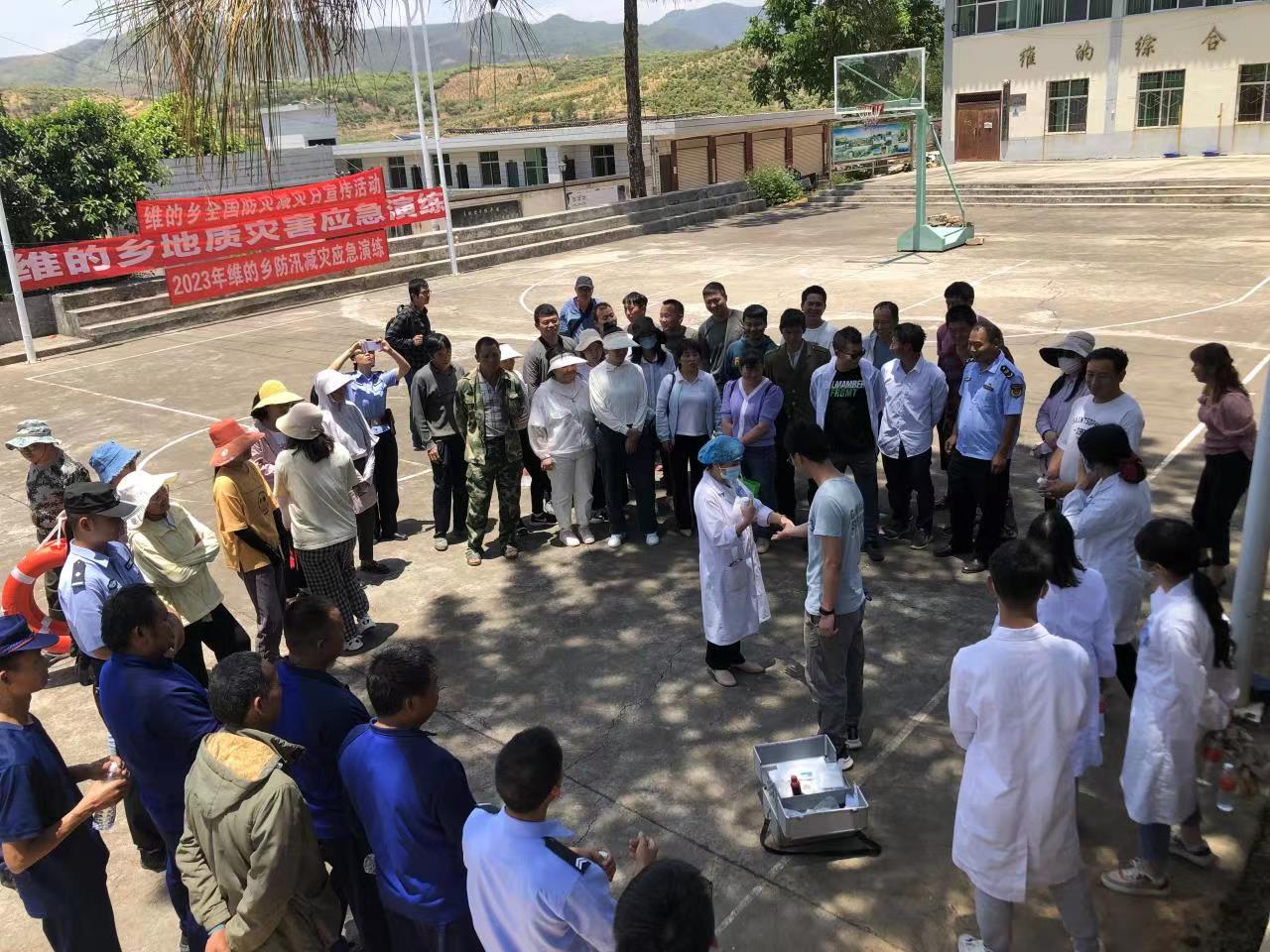 为提高维的乡广大干部群众防灾减灾意识,提高灾害发生时全乡应急、互救能力,5月18日下午,维的乡组织乡、村级开展了2023年防灾减灾综合应急演练,全面检验了灾害发生时全乡综合应急救援能力和水平,本次演练共计120余人参加。
