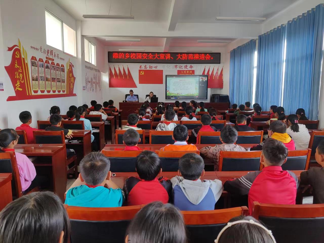 维的乡派出所民警杨志伟围绕《中华人民共和国预防未成年人犯罪法》,结合校园常见的未成年人犯罪的真实典型案例,对相关法律法规进行了解读。通过“以案析理、以案说法、以案警醒”的方式,向同学们分析和讲解了导致青少年学生走向违法犯罪的严重不良行为以及承担刑事责任的年龄划分。此外,还向同学们讲解了在遇到不法侵害时该如何保护自己、帮助他人。同学们听得非常认真,活动现场反响热烈。