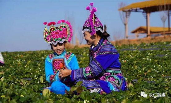 莲池乡的草莓采摘园,是永仁县最大的草莓采摘园之一,种有百余亩季节性草莓。这里的草莓外观呈心形,鲜美红嫩,香味浓郁,且采摘时间长,每年11月至次年3月都有草莓可摘。