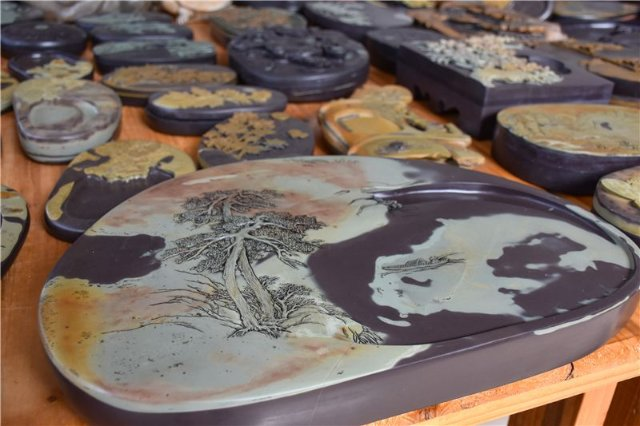 永仁古称“苴却”,盛产紫黑细腻之石,用以做砚,既发墨,也润笔,存墨不腐。苴却砚制作技艺源远流长,形成了浑实、厚重、浓郁、瑰丽的艺术风格。苴却砚集中了中国八大名砚之特色于一身,如端砚的石眼、金银线、蕉叶白、鱼脑冻;歙砚的金星、眉纹;洮河砚的紫石鸭绿;易水砚的浅黄碧绿玟纹;澄泥砚的细腻;贺兰砚的绿标、红金刚;红丝砚的彩纹;松花砚的彩绿、紫袍玉带等,在砚林奇珍中独树一帜,誉满四海。传承人马世明被评为“”中国苴却砚制作技艺省级代表性传承人”。