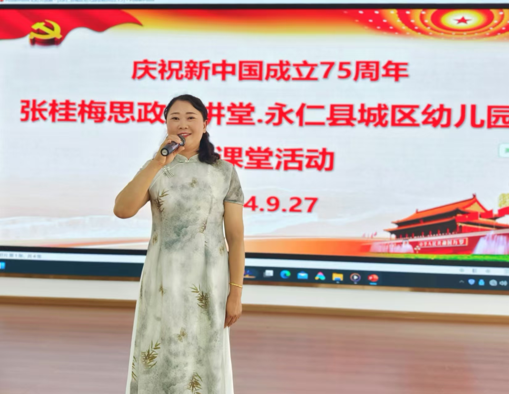 致敬榜样,向阳生长。“张桂梅思政大讲堂.永仁县城区幼儿园分课堂”宣讲活动,于2024年9月27日拉开帷幕,活动中老师和孩子们通过歌舞、朗诵等形式,生动讴歌了张桂梅老师无私奉献、坚韧不拔的精神品质。通过张桂梅老师的先进事迹宣讲,将思政教育融入到幼儿教育之中,在孩子们幼小的心灵中种下了积极向上、关爱他人、勇于奉献的种子。