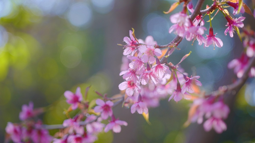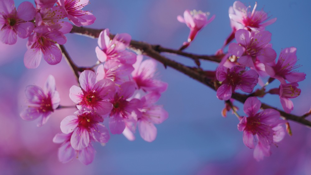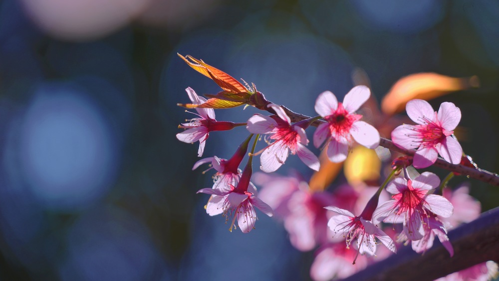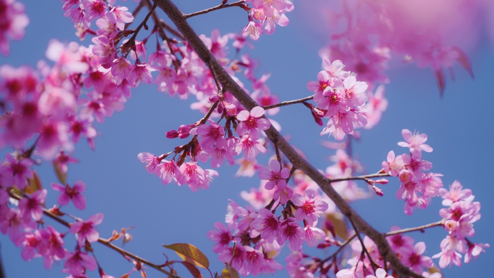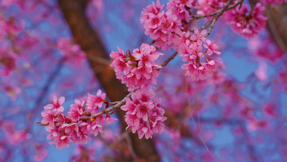 永仁县永定河畔、猛虎乡的野樱桃花竞相开放
