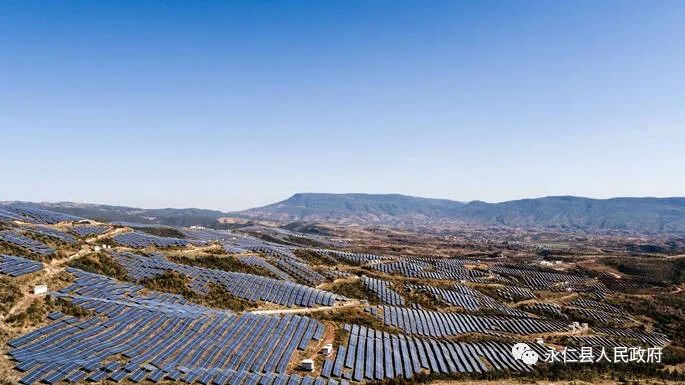 变“光”为“金”,荒山变“金山”。永仁县充分发挥能源资源优势,加快规划建设“风光水储”一体化清洁能源基地,促进风能、太阳能、水能开发利用,不断加快储能、充电设施建设,全面完成新一轮农村电网改造建设工程,加快新能源基础设施及开发利用项目建设,切实提升永仁在“西电东送”和“云电外送”中的能源枢纽地位。目前,全县已建成集中式地面光伏电站5个,“十四五”期间共规划储备集中式光伏电站项目28个和分布式光伏项目2个,预计到“十四五”末全部建成投产后,全县绿色能源总装机容量将达300万千瓦以上,年发电量71.5亿千瓦时,实现年产值24亿元。