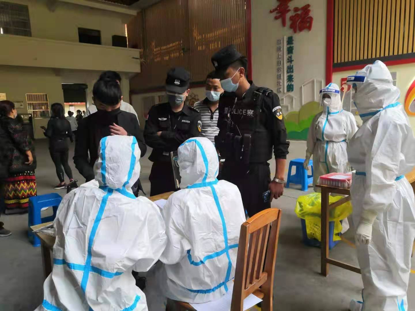 3月31日14:30,剩余30名核酸采样队员顺利到达瑞丽市,大家不顾长途奔袭的疲惫和晕车带来的不适,匆匆吃了盒饭,按照指挥部的分工,迅速分发物资,穿戴整齐后迅速与当地医护人员快速完成交接后立即奔赴到5个社区采样点开始紧张的核酸采样工作。5个社区采样点都是老旧小区,人员居住分散,结构复杂,还有部分行动不便的高龄老人、产后妇女和儿童,队员们在当地工作人员的指引下一家一户的上门服务,“骑上我心爱的小摩托”成为了采样路上一道独特的风景,就这样奔波到夜里十二点多。第二天中午,地方公安部门突然带来一名缅甸籍非法偷渡拘留的人员需要采样,队员们没有恐惧和退缩,按照规范流程迅速采集了样本。面对重重的困难和突发情况队员们攻坚克难,迎难而上,截至4月1日24时,按时按质完成了370人份的核酸样本采集任务。