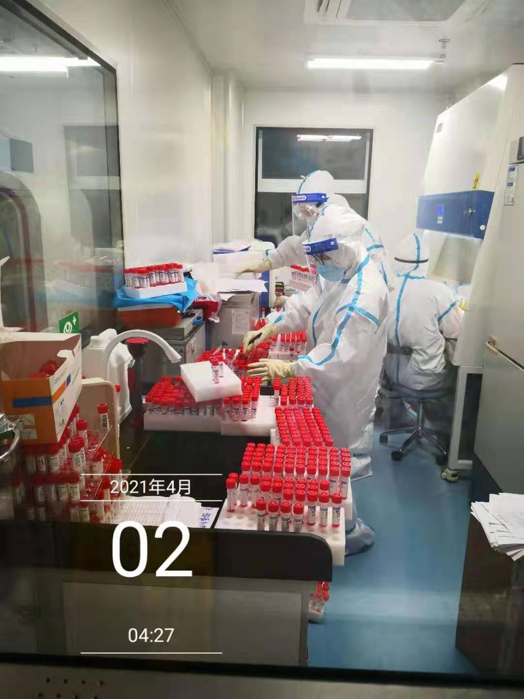 3月31日13:20,核酸检测组4名检验专业队员到达德宏州妇幼保健院参与全员核酸样本检测任务。队员们到达驻地匆匆放下行李随便吃了几口盒饭便迅速投入紧张的检测工作中。疫情形势严峻,检测结果关乎这场战疫的成败,时间就是生命,他们一站就是十几个小时只为疫情防控抢时间,因为工作特殊在岗期间不能吃东西不能喝水,凌晨4点半还依然坚守在岗位,就这样48小时内他们完成了10280人的核酸样本检测。