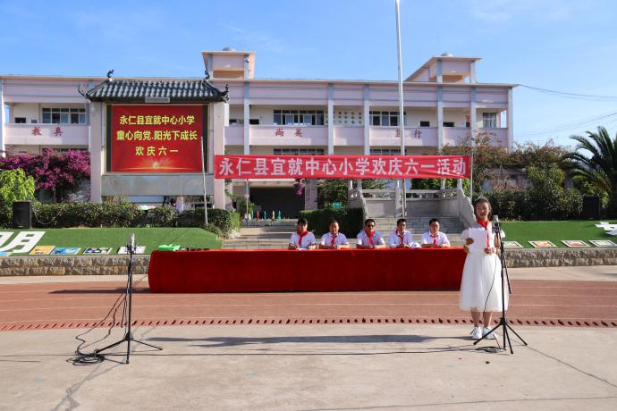 为庆祝第71个“国际儿童节”,2021年6月1日,永仁县宜就中心小学隆重举办庆祝第71个“国际儿童节”文艺汇演。永仁县委书记吴亚峰同志在永仁县教育体育局党组书记、局长罗雪芹同志、永仁县宜就镇党委书记张春培同志等领导的陪同下到我校参加活动。活动中师生们通过精彩纷呈的节目表演欢度六一国际儿童节,展示近阶段党史学习教育成果。