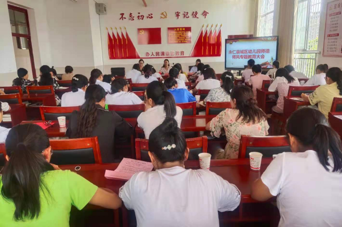 按照中共永仁县教育工作委员会关于在全县教育体育系统开展师德师风的通知,结合永仁县城区幼儿园的实际情况,2021年7月10日,永仁县城区幼儿园开展了师德师风专题教育大会。会议由党支部书记姜奇伶主持,城区幼儿园全体教职工63人参加了会议。