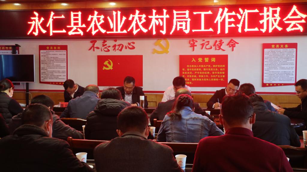 彭鉴要求:一是要紧扣党的二十大精神,深入学习省委、省政府、州委、州政府下发的系列三年行动方案,认真谋划,结合永仁农业农村发展实际,制定农业农村重点工作任务清单及行动方案;二是按照县委、县政府“一港三园”建设目标,紧扣打造永仁林果产业强县重点任务,结合三年行动计划,大力推动林果产业规模化、品牌化、高端化;三是以“四美”乡村建设、“厕所革命”、村容村貌提升为契机,不断总结、深入谋划,全力推进乡村建设行动;四是认真总结肉牛产业发展,充分发挥“金牛贷”的撬动作用,用好用活能繁母牛“超市”,确保肉牛产业真正成为群众增收致富的支柱产业;五是以建设“阳光生态花果园”为主导,聚焦“1+1+7”重点产业,持续推进数字化改革进程,压实“智慧农业”建设任务,充分发挥新型经营主体的示范引领作用,全面推动乡村产业兴旺、农民增收致富;六是高度重视耕地“非农化”“非粮化”问题,全面推进高标准农田建设工作,牢牢守住粮食安全底线;七是以培育农业市场主体为重点,建立长效机制,加大扶持力度,全力抓实绿色食品牌打造,加快打造一批有影响力的企业品牌和产品品牌。