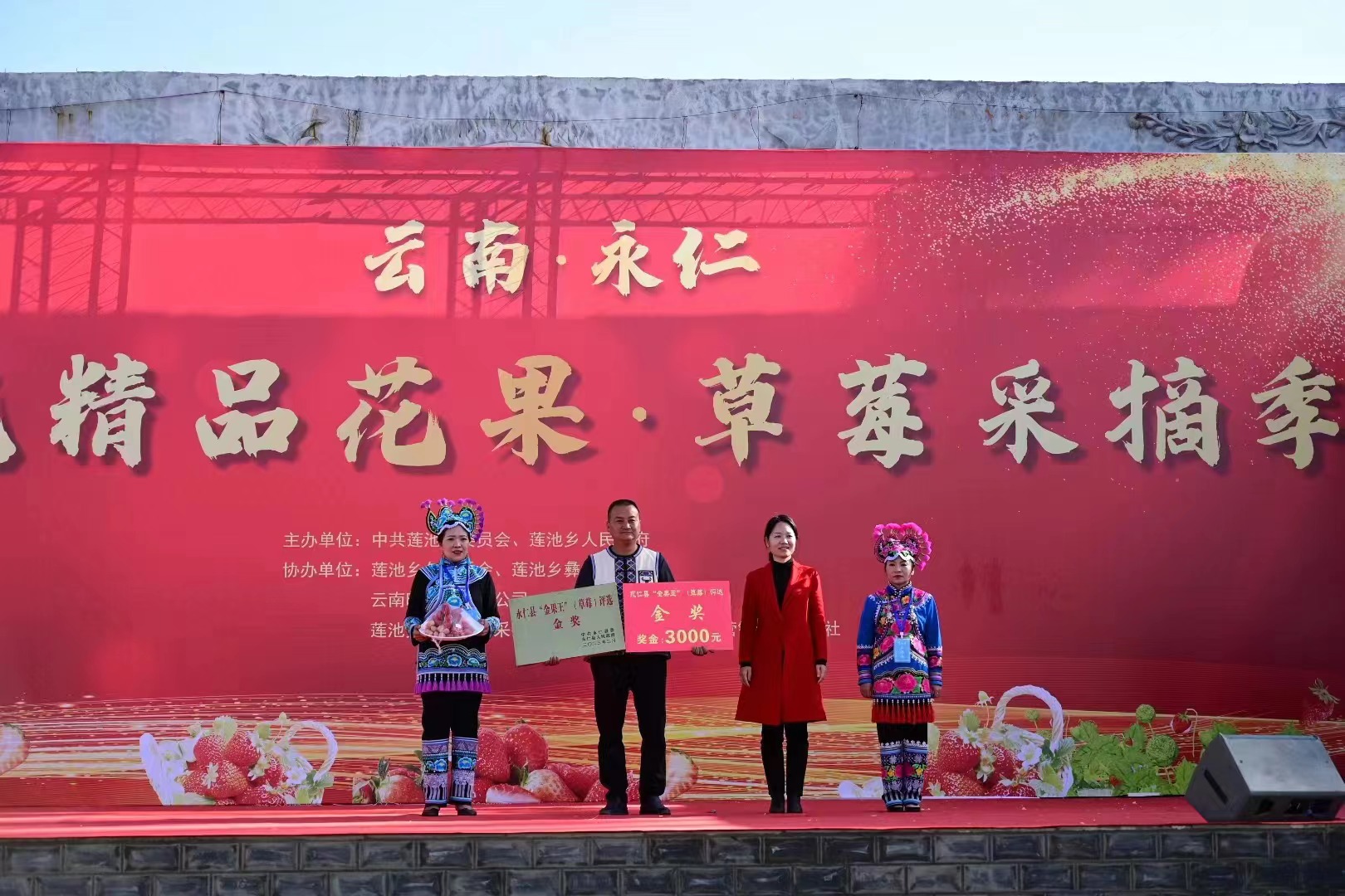 活动还现场对获得金奖的永仁县莲池乡映红草莓种植专业合作社,银奖的永仁宏鑫草莓种植专业合作社、永仁阳光果香农特产品营销专业合作社、永仁香悦水果种植专业合作社,铜奖的高帮超、寸津俨、高文兵、袁春丽、祝发美种植户进行了颁奖。