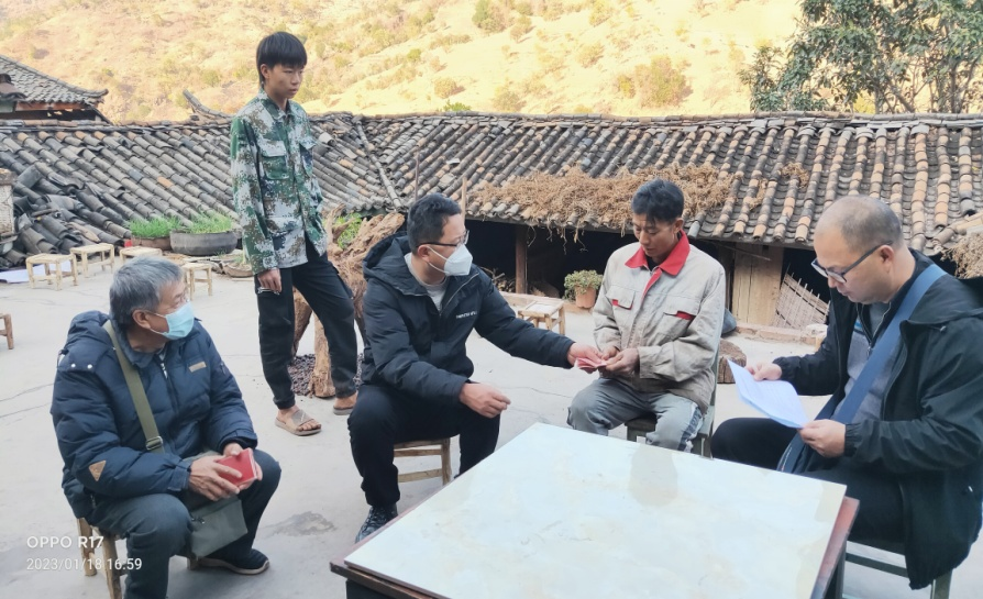 2023年1月18日,在春节前夕,中共永仁县教育工委副书记王海琴、县教育体育局副局长李斌一行6人,代表县教育体育局深入定点帮扶的永兴乡那软村,对有特殊困难的脱贫户和监测户进行春节慰问。