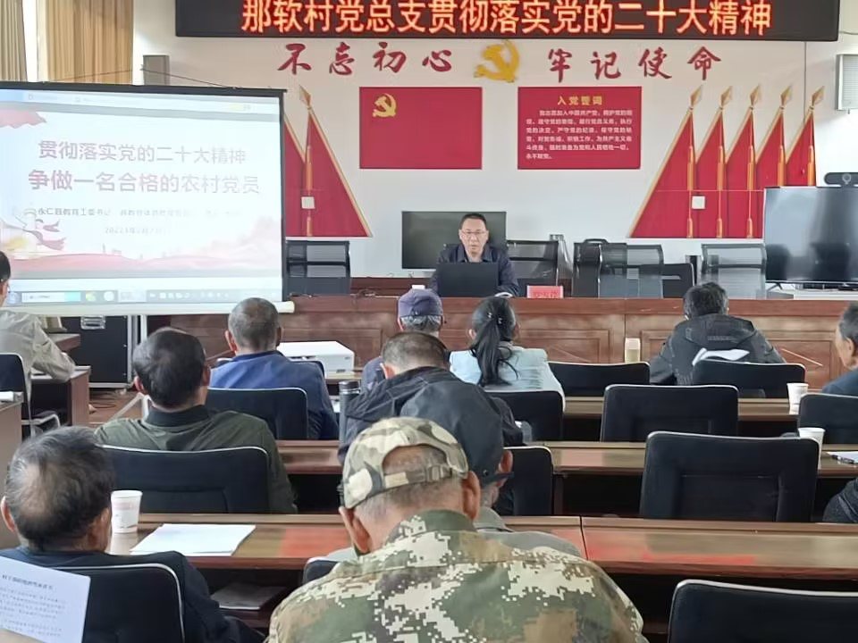 2月23日下午,永仁县教育工委书记罗雪芹同志为扶贫联系点永兴乡那软村党总支的40余名党员,上了一堂题为《贯彻落实党的二十大精神 争做一名合格的农村党员》专题党课。
