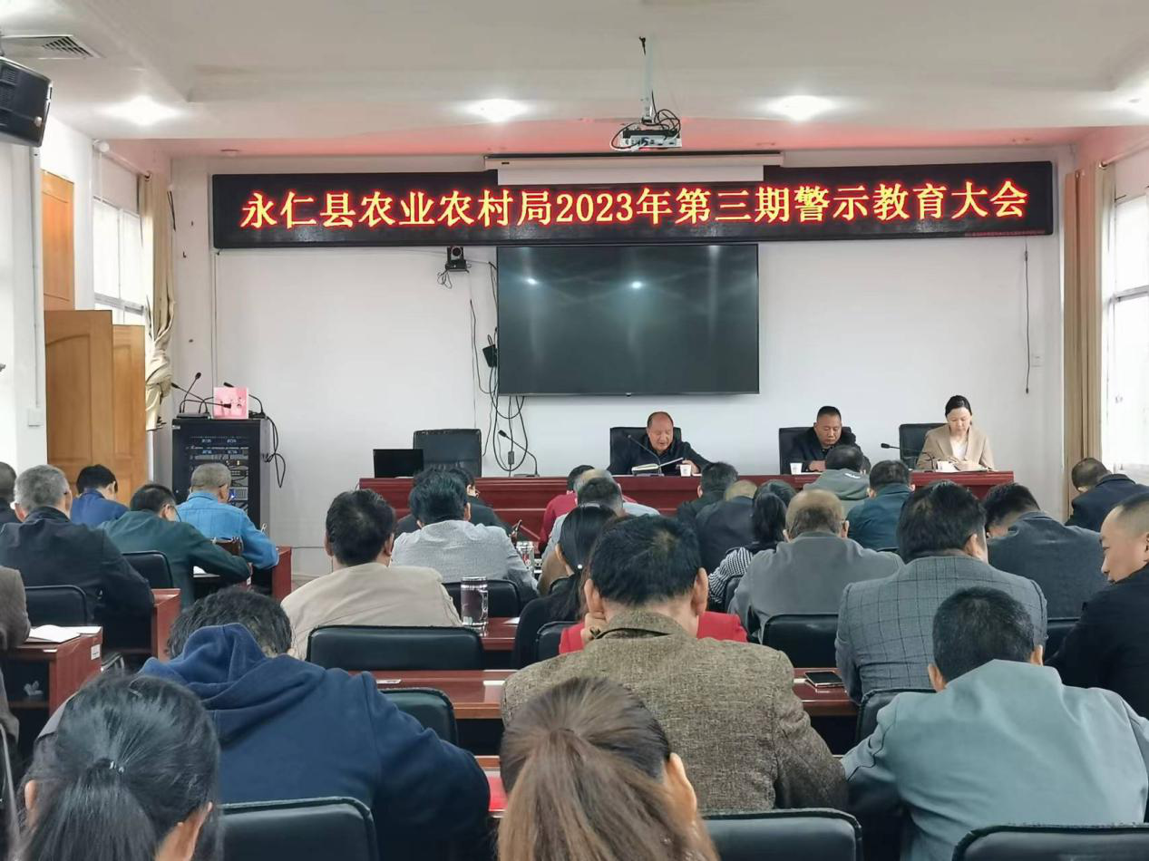 2023年5月12日上午,永仁县农业农村局组织干部职工召开2023年第三期警示教育大会,会议组织观看了警示教育片《下一个“片中人”》。