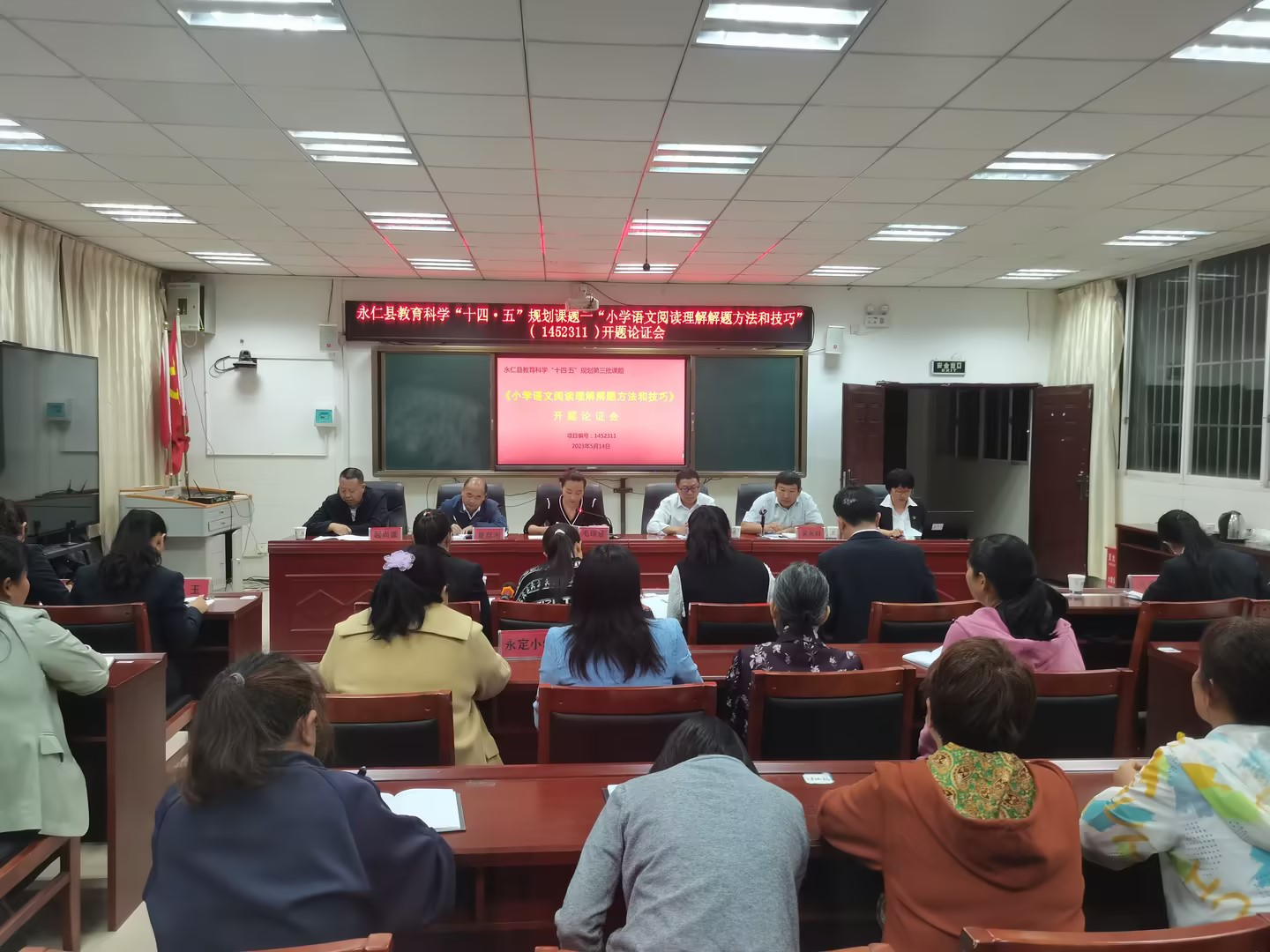 教而不研则疏,研而不教则浅。为提高课题研究的规范性、科学性和可操作性,2023年5月14日,永仁县小学语文名师工作室在莲池中心小学会议室举行永仁县教育科学“十四五”规划课题——《小学语文阅读理解解题方法和技巧》(1452311)开题论证会。本次开题报告会有幸邀请到永仁县教师进修学校起勇校长、县教育体育科学研究室毛琼慧副主任、夏荔湘老师和起尚康老师等三位专家进行开题指导。开题报告会由永仁县小学语文名师工作室主持人石婧主持,工作室成员校的教师代表、课题组成员参加了此次论证会。