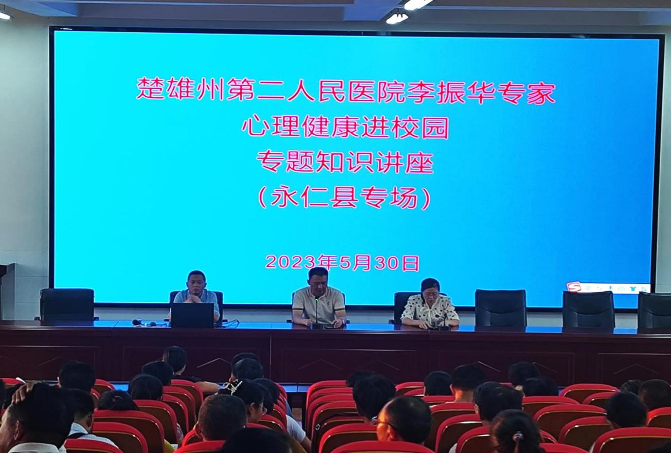 为进一步推进永仁县师生心理健康教育工作,大力普及精神卫生和心理健康常识,关注儿童青少年的心理健康问题,永仁县卫生健康局和永仁县教育体育局经过一个多月的策划准备,于2023年5月30日邀请到由楚雄州第二人民医院公共卫生科黄丽琼科长带领的心理健康专业团队,到我县为第一中学、民族中学及职业高级中学的师生开展了心理健康测评、专题知识讲座及现场咨询活动。