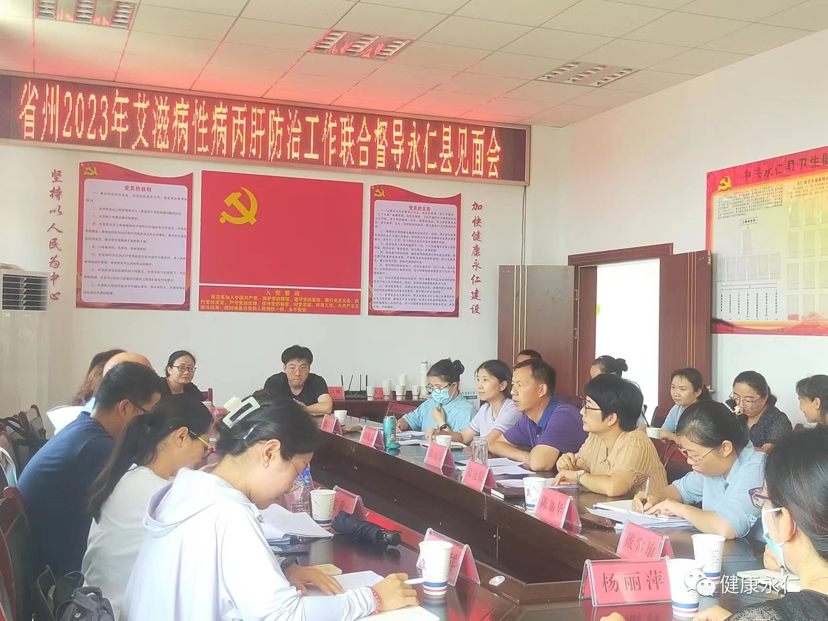 为促进《云南省第五轮防治艾滋病人民战争实施方案(2021—2025年)》各项工作措施落实,促进艾滋病监测检测、高危行为干预、艾滋病病毒感染者管理、梅毒规范诊疗、性病丙肝疫情管理和艾滋病防治社会组织基金项目等工作全面落实,及时发现并解决工作中存在的难点、痛点问题,云南省预防控制中心抽调省内相关领域专家于2023年8月14日—16日对永仁县开展艾滋病、性病、丙肝综合防治现场技术指导和数据质量评估核查。联合督导组由保山市疾病预防控制中心副主任杨家芳任组长,云南省疾控中心、保山市疾控中心、楚雄州卫健委、楚雄州疾控中心共14人组成。