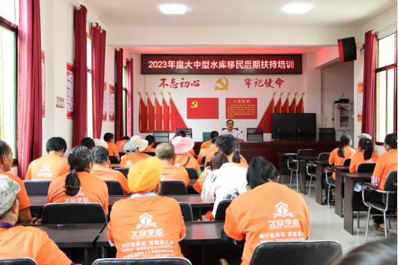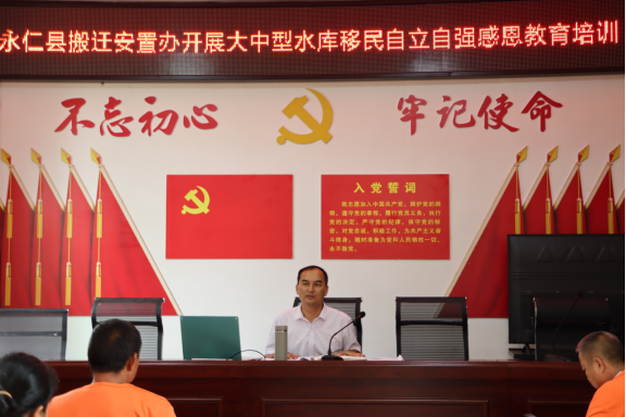 县搬迁安置办坚持以党建为引领,以“让党旗在库区上飘扬,让党旗在移民中闪光”为目标,强化感党恩宣传教育引导。技能培训前,党组书记、主任罗文才同志围绕党的二十大精神,首先对移民群众进行了“自立·自强·感恩”教育培训,从思想引领上加强对参训移民的感恩教育,进一步在移民群众中树立“戴穷帽可耻、摘穷帽光荣”的观念,激发移民群众要致富、奔小康的主体意识和内生动力,深化移民群众知党恩、感党恩的理性认知,杜绝群众一边享受政策,一边盲目抱怨等苗头出现,旨在提高移民群众坚定不移跟党走的信心与决心。