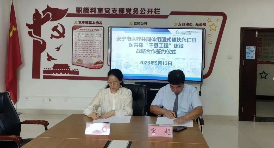 考察组一行与安宁市医共体负责同志进行了深入沟通交流,签订了安宁市医疗共同体组团式帮扶永仁县医共体“千县工程”建设战略合作协议。