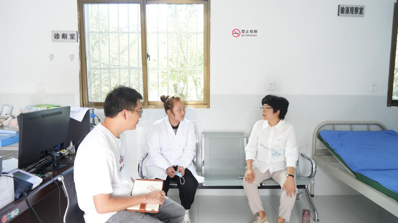 在交谈过程中,了解到母永秀是今年刚招进的村医,家离村卫生室近十公里的路程,每天上下班要花一个多小时,局长起艳梅当即联系干树子村委会,双方协商是否能把“家”搬到村委会,村主任邓有志表示:“村医护佑着我们村民的健康,我们就应该保障好她,平时我们进村入户宣教,也方便带着她(母永秀),这样也能尽快熟络村里的情况”。
