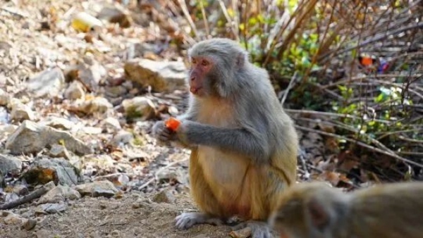 近段时间,山上食物少,猴群便成群结队集结在山坡上打闹嬉戏、互相整理毛发,捡食游客为他们放置的苹果、饼干、面包等食物,萌态十足,非常可爱,构成了一幅自然和谐的生态画卷。