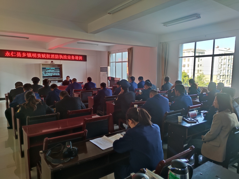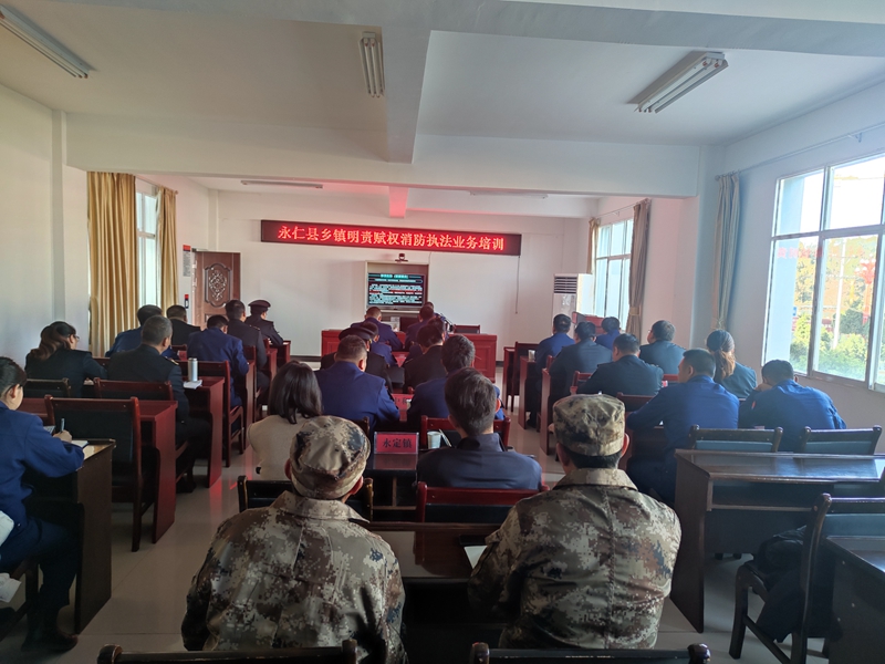 为进一步提升乡镇执法人员业务能力,切实发挥乡镇综合执法队伍在火灾防控中的作用,加强基层消防监管力量,12月20日,永仁县消防救援大队组织召开乡镇赋权消防执法业务培训会,并对乡镇赋权消防执法进行面对面业务指导,全县7个乡镇各综合行政执法队2名在编工作人员和综合救援服务中心2名队员共计28人参加了此次培训。