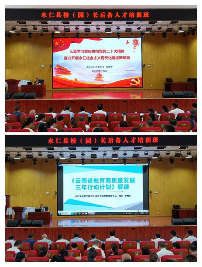 教育是最大的民生,人才是教育发展的根本保障。为建设一支政治强、业务精、作风正、能够担当学校发展重任的高素质专业化校(园)长队伍,根据《永仁县校(园)长后备人才培养计划(试 行)》1+6 培养方案,经县委人才工作领导小组办公室研究,8月22日,在永仁一中思源会堂举办了永仁县校(园)长后备人才深入学习党的二十大精神专题培训。全县各中小学校校(园)长及后备干部80人参加培训。