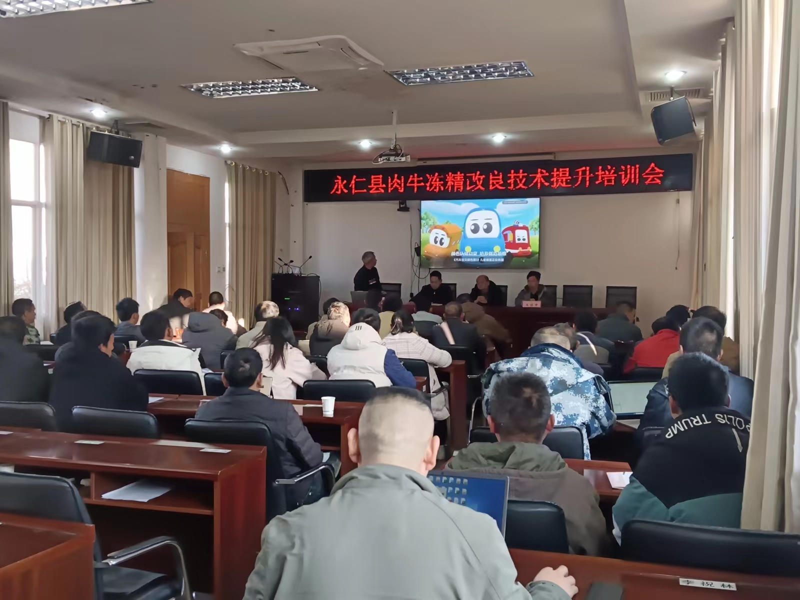 为进一步提升肉牛冻精改良技术,全面推进永仁县肉牛产业高质量发展,不断推动肉牛产业转型升级和提质增效,1月12日,永仁县农业农村局组织召开全县肉牛产业乡土人才培养暨肉牛冻精改良技术提升培训班,县内各乡镇从事肉牛冻精改良的技术人员、动物防疫专业合作社社长、各乡镇农业农村服务中心主任或负责畜牧兽医工作的副主任50余人参加会议。