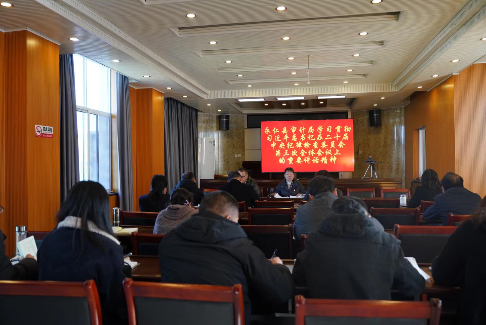 1月15日,县审计局召开会议,传达学习贯彻习近平总书记在二十届中央纪委三次全会上的重要讲话精神和二十届中央纪委三次全会精神。会议由局党组书记、局长虎进英主持,全体审计干部参加。