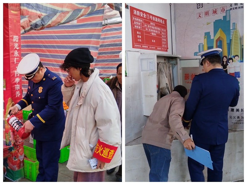 随着春节临近,家家户户都忙着采购年货,年货街、超市人流量大、可燃物多,消防安全风险增大。为进一步做好火灾防控工作,近日,永仁县消防救援大队结合冬春火灾防控工作要求,联合市监局等部门开展年货街消防安全大检查,让广大市民放心购置年货。