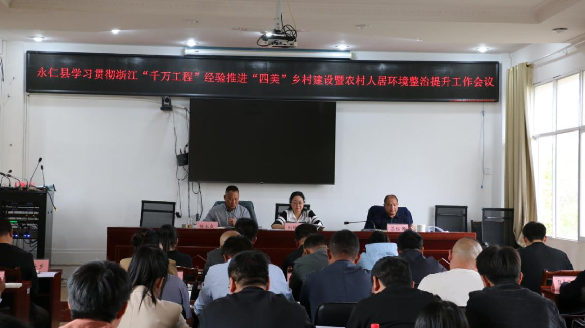 永仁县于2024年3月12日召开学习贯彻浙江“千万工程”经验扎实推进“四美”乡村建设提升农村人居环境工作推进会议,县委农办、县农村人居环境整治专班办领导,各乡镇分管领导、乡镇农业农村服务中心主任及1名业务工作人员参加了会议。
