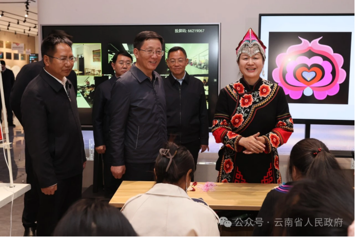 △ 王予波在彝绣产品交易中心调研。