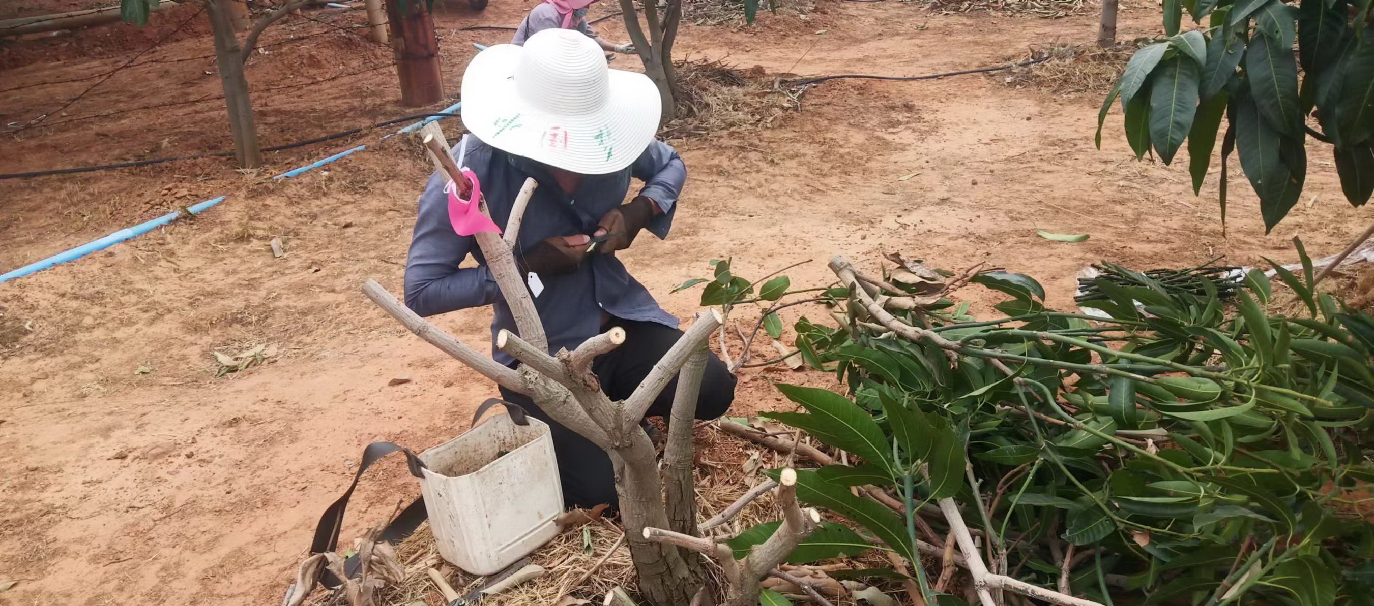 走进永仁哲林实业有限公司高原晚熟芒果新品种观察实验示范园内一片繁忙景象,云南省农业科学院热带亚热带经济作物研究所尼章光老师正带领芒果技术专家团队忙碌着,对新引进的芒果品种进行嫁接,挂标识牌。尼章光老师介绍道:“永仁哲林高原晚熟芒果新品种观察实验示范园依托云南省乡村振兴科技专项产业关键技术集成示范项目,于2024年4月19日开始启动嫁接,本次引入61个新品种实验示范观察,开展高原晚熟芒果品种引种观察试验,计划用5年的时间进行新品种示范观察,筛选出适应永仁县不同海拔气候、不同市场需求的芒果新品种。”