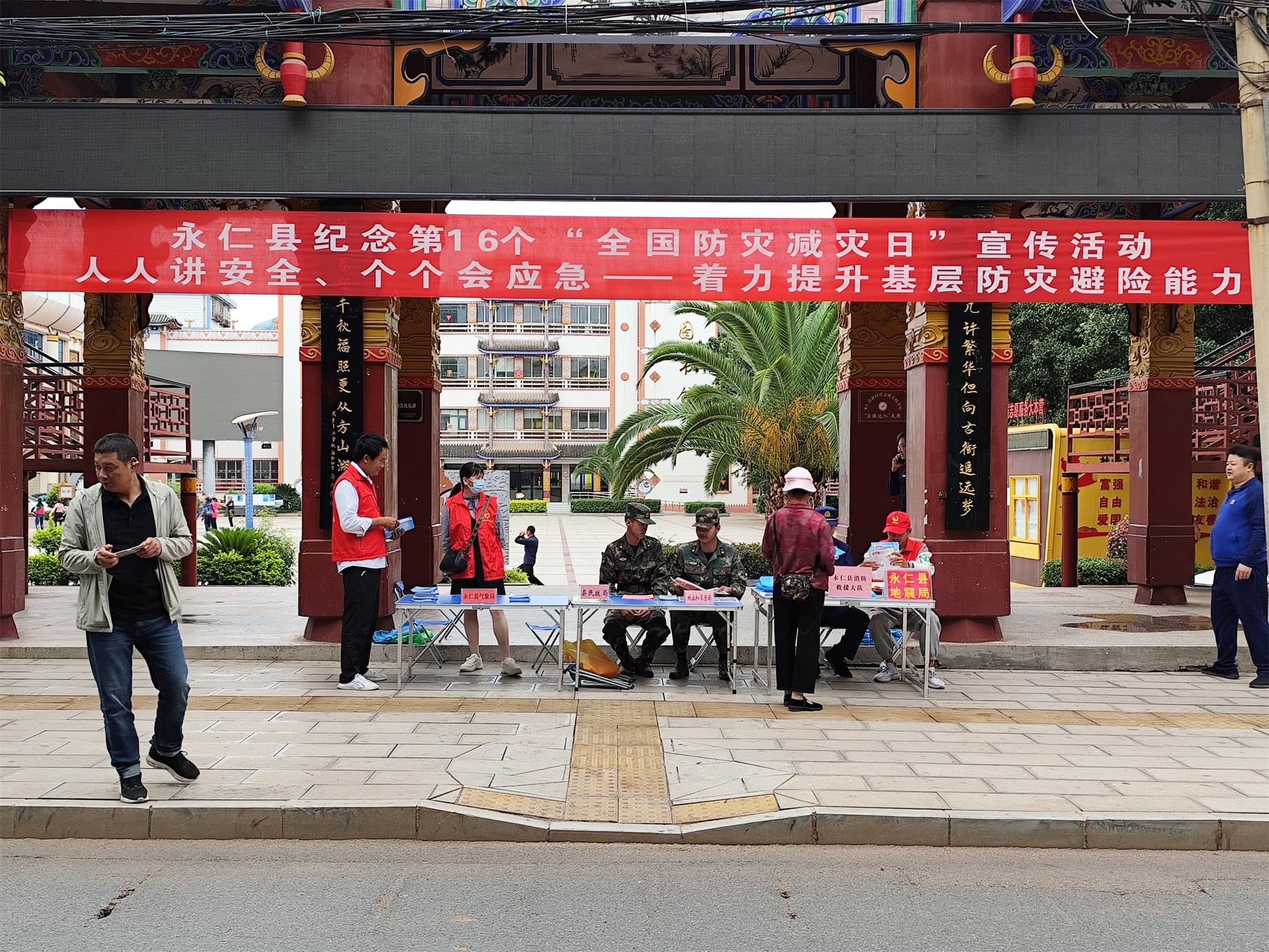 5月12日上午,在全国第16个防灾减灾日到来之际,永仁县气象、地震、应急、水务、发改、林草、交通等12家单位在县太阳广场共同举办“人人讲安全、个个会应急——着力提升基层防灾避险能力”为主题的防灾减灾日宣传活动。