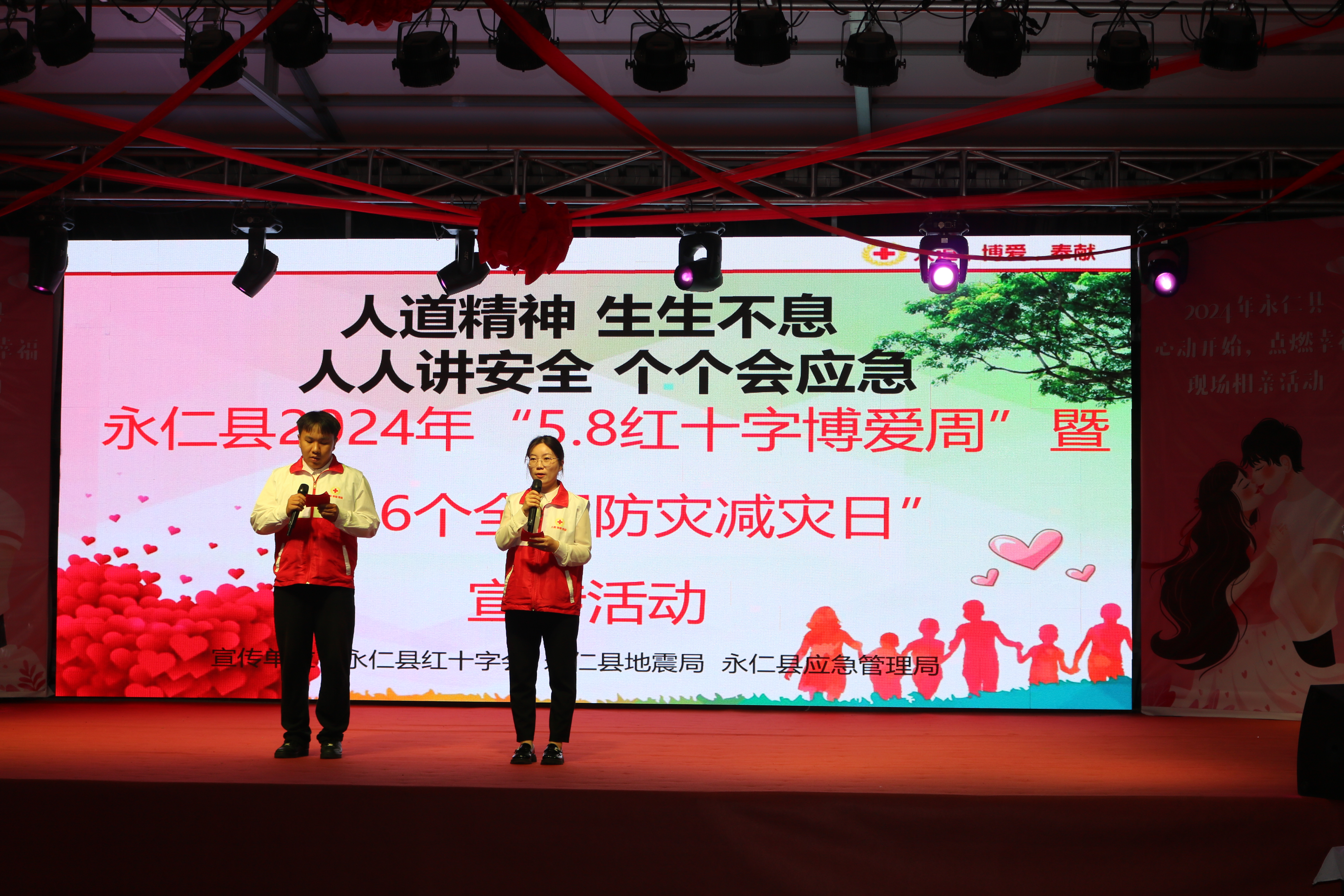 在第16个全国防灾减灾宣传日到来之际,永仁县地震局、永仁县红十字会于5月11日晚在“滇川夜明珠”国潮美食街演艺场开展“2024年5.8红十字博爱周”暨“第16个全国防灾减灾日”专题文艺演出宣传活动。