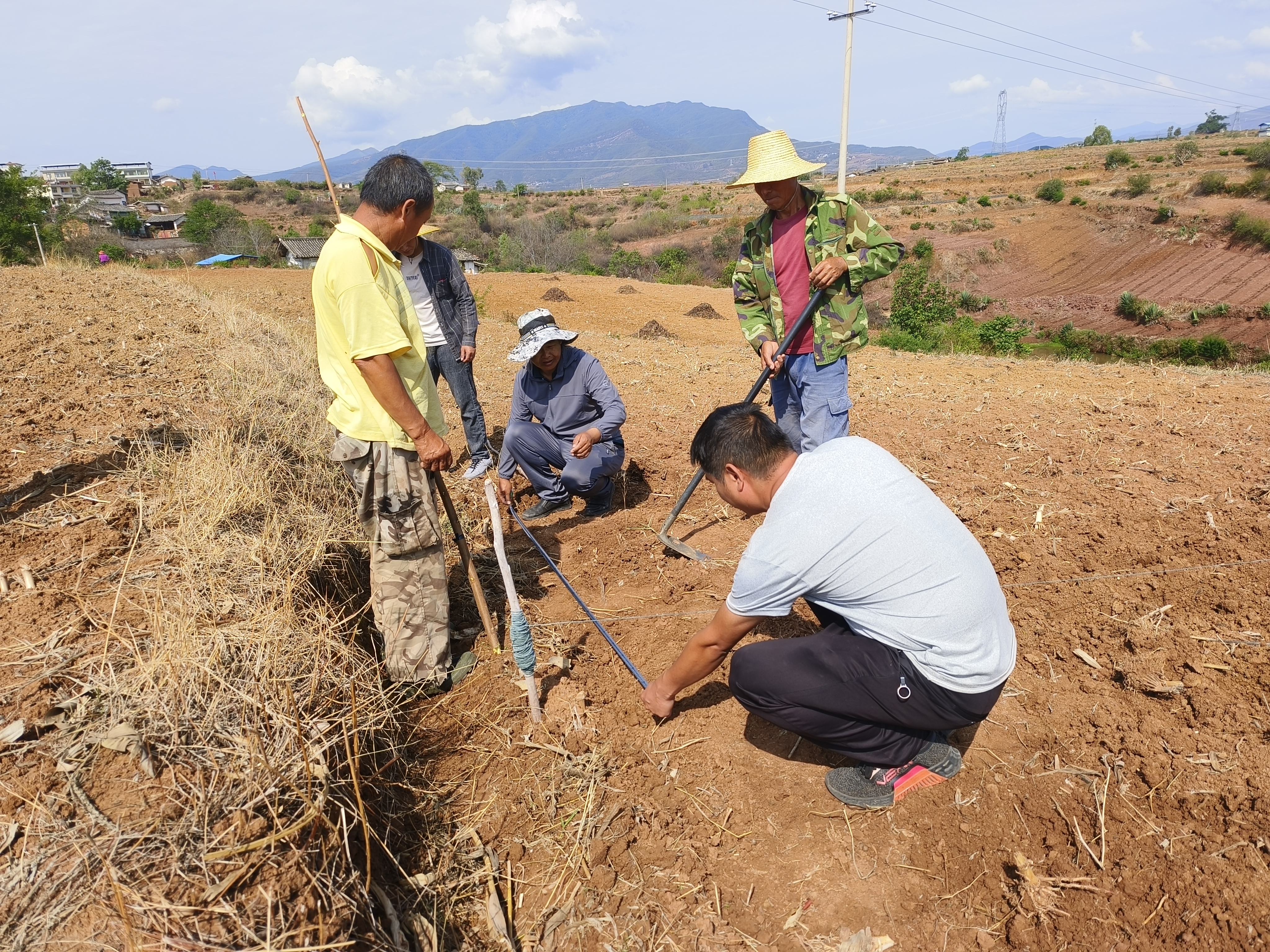 小满时节正值大豆玉米带状复合种植的关键时期,永仁县农业农村局抢抓降雨的有利时间,积极组织全县7乡镇开展大豆玉米带状复合高产种植。走进宜就镇老怀哨500亩连片大豆玉米带状复合种植核心示范样板种植现场,数十名群众分工协作,有的拉绳,有的点播,有的翻犁,县乡农业专业技术人员现场进行技术指导,亲自示范,认真讲解玉米大豆“2+3”种植模式行株距、底肥施用、田间管理等实用技术和关键环节要点,大家各司其职,干劲十足,大豆玉米带状复合种植正在如火如荼有序进行。