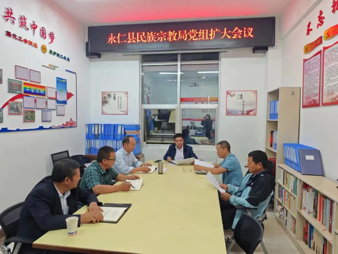 4月12日,永仁县民族宗教局党组召开2024年第2次党组扩大会议,深入学习贯彻习近平总书记关于党纪学习教育的重要讲话、重要指示精神,和中央、省委、州委、县委党的建设领导小组会议精神,专题研究部署党纪学习教育工作。