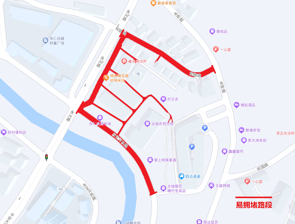 1、节日期间,好又多超市、华联超市受购物流影响,永仁古城区人流量、车流量将会加大;