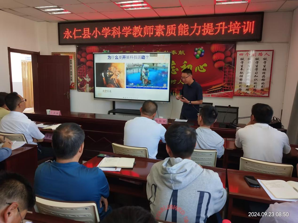 此次培训由永仁县科学技术协会主席王永丽主持,并邀请楚雄师院附属小学科学教师,云南省中小学学科带头人,云南省兴滇英才支持计划教学名师,云南省基础教育小学科学名师工作室主持人,全国课赛一等奖获得者杨海斌老师担任主讲。