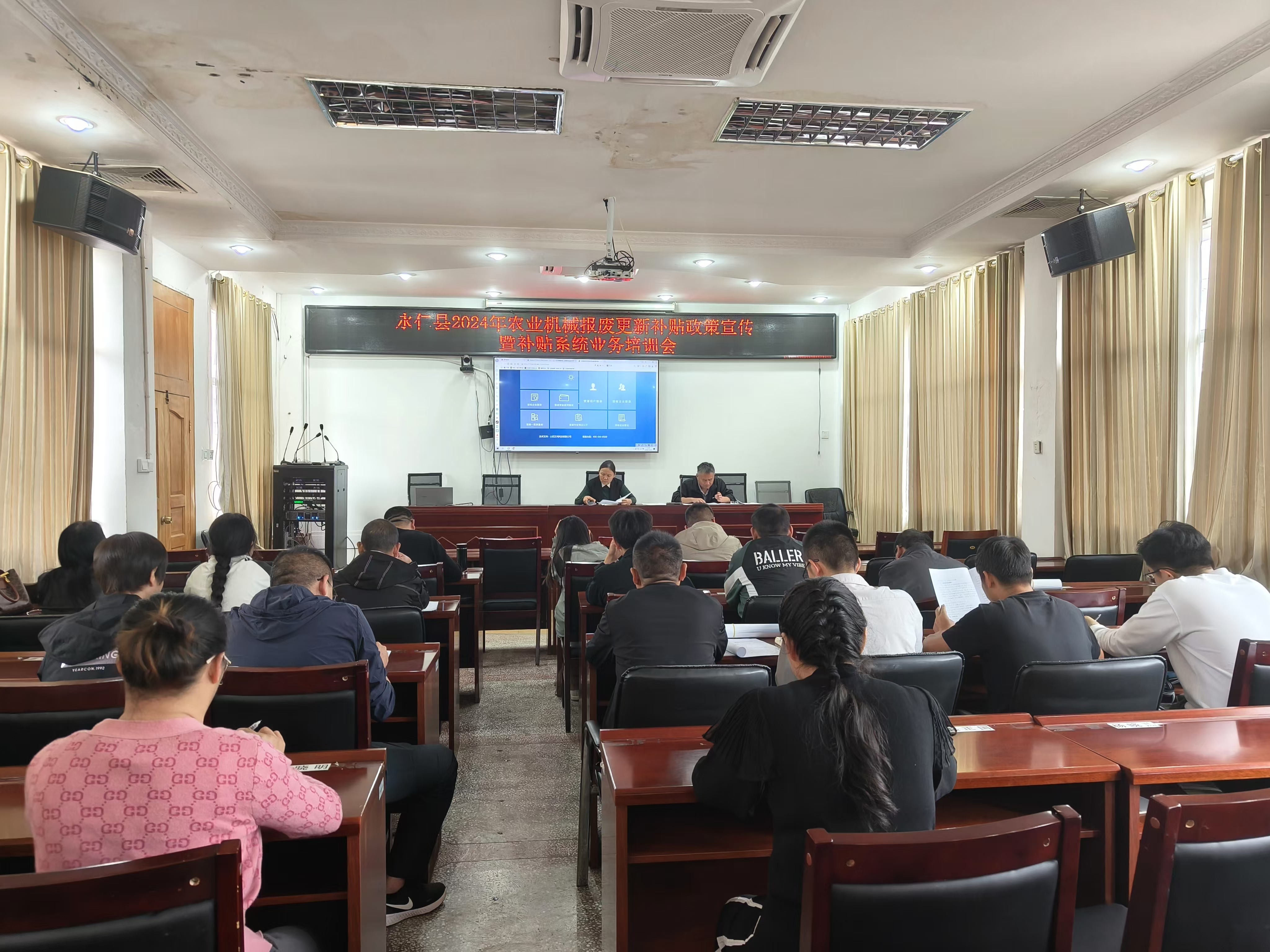 为认真贯彻落实农业机械报废更新补贴政策,推动永仁县2024年农业机械报废更新补贴工作,10月23日下午,永仁县农业农村局在四楼会议室组织召开2024年农业机械报废更新补贴政策宣传暨补贴系统操作培训会,县农业农村局分管领导、种植农机管理股工作人员,各乡镇农业农村发展服务中心主任、农机购置补贴业务员,报废回收拆解企业负责人共20余人参加会议。