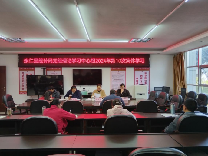 11月25日,永仁县统计局开展局党组理论学习中心组2024年第10次集体学习。此次学习以深入学习贯彻新修改“统计法”为主题,旨在通过专题学习,局班子带头增强贯彻落实“统计法”的思想和行动自觉,确保统计事业始终沿着正确的法治轨道前行。局党组理论学习中心组成员、局内各股室长、县委理论学习中心组县级列席旁听工作组领导参加了学习旁听。