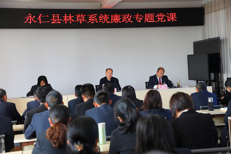 2月20日,永仁县委常委,县纪委书记、县监委主任刘勇同志到永仁县林草局开展了廉政专题党课活动,县林草局领导班子成员,局机关全体干部职工、方山管护局和国有林场干部职工共80余人参加授课。