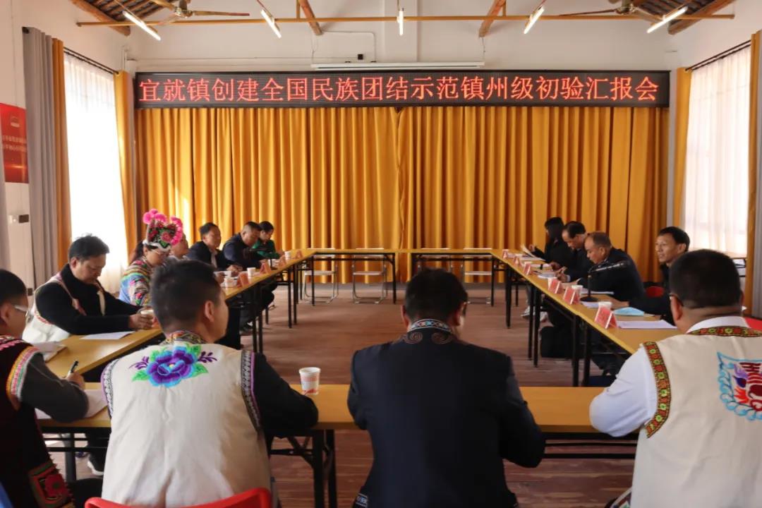 初验工作组一行通过实地走访、查阅台账资料、召开座谈会、听取情况汇报等方式,到宜就镇综合文化服务中心、龙潭民族团结公园、宜就小学、综治中心、火把彝村和外普拉村委会对争创全国民族团结进步示范单位工作进行了现场初验。