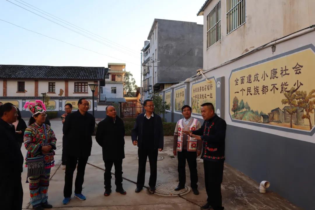 1月11日上午,楚雄州民族宗教委副主任马光辉、杨洪雨等楚雄州申报全国民族团结进步示范县示范单位初验工作组一行到宜就镇开展示范单位初验工作。
