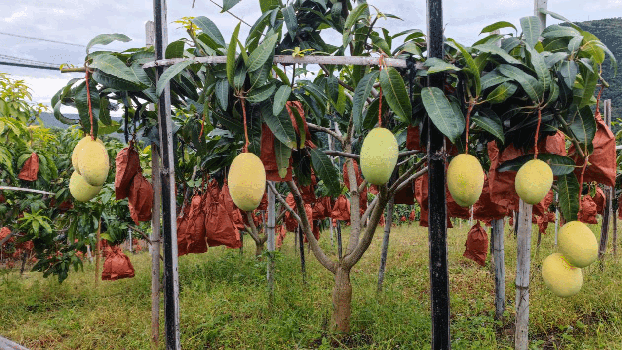 精耕示范“标杆园”。宜就镇聚焦示范带动,在种植海拔1460米至1620米区域划分早熟、晚熟片区,实施“七个统一”标准化种植管理,建成精品示范园4个,辐射带动示范带动95户农户1542亩芒果地开展科学管护。同时强化品牌和品质双提升,推动合作社成果申报5个芒果产品绿色食品认证,核准产量达8400吨,覆盖263户种植户4846亩果园;完成上市前芒果农残快速检测44份,严把质量关;邀请攀枝花热科院芒果种植专家开展7场次技术培训,300余人通过“理论教学+田间实操”掌握控梢促花、病虫害防治等关键技术,为产业提质注入科技动能。
