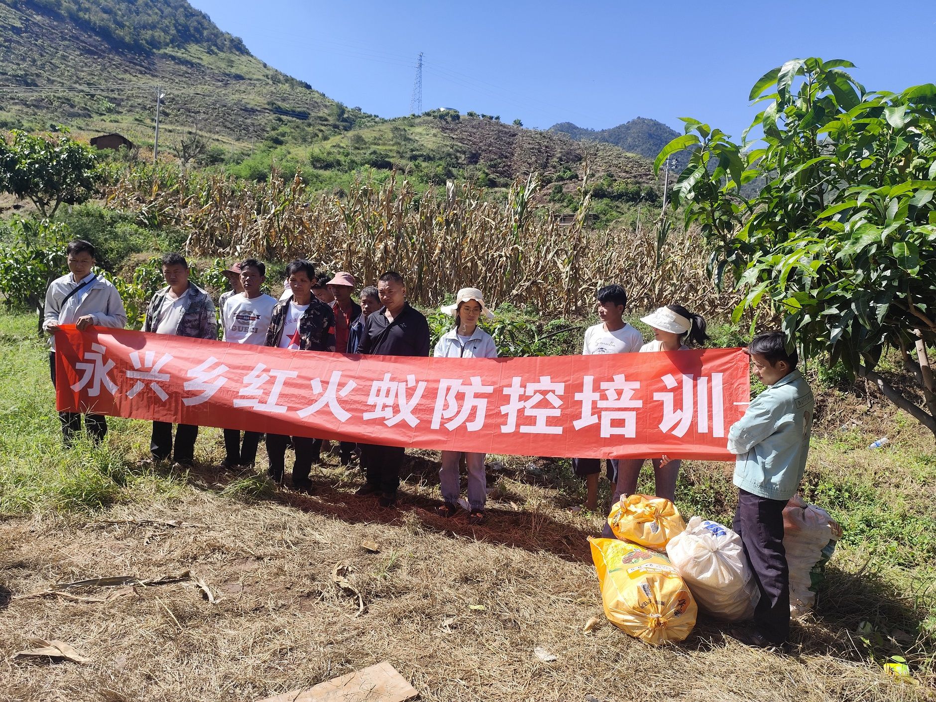 时下的金沙江畔,海拔1200多米的永仁县永兴傣族乡白马河村,近2万亩芒果已完成采摘销售,曾经挂满枝头的“甜蜜果实”虽已发往全国各地,但果园里的忙碌并未停歇。9月25日,乡农业技术人员带着专业工具与实用知识走进田间,一场针对芒果采后清园的“技术赋能课”,正在这片孕育过丰收的土地上生动开讲,正对红火蚁“亮剑”,用科技“开方”助芒果树“待产”。