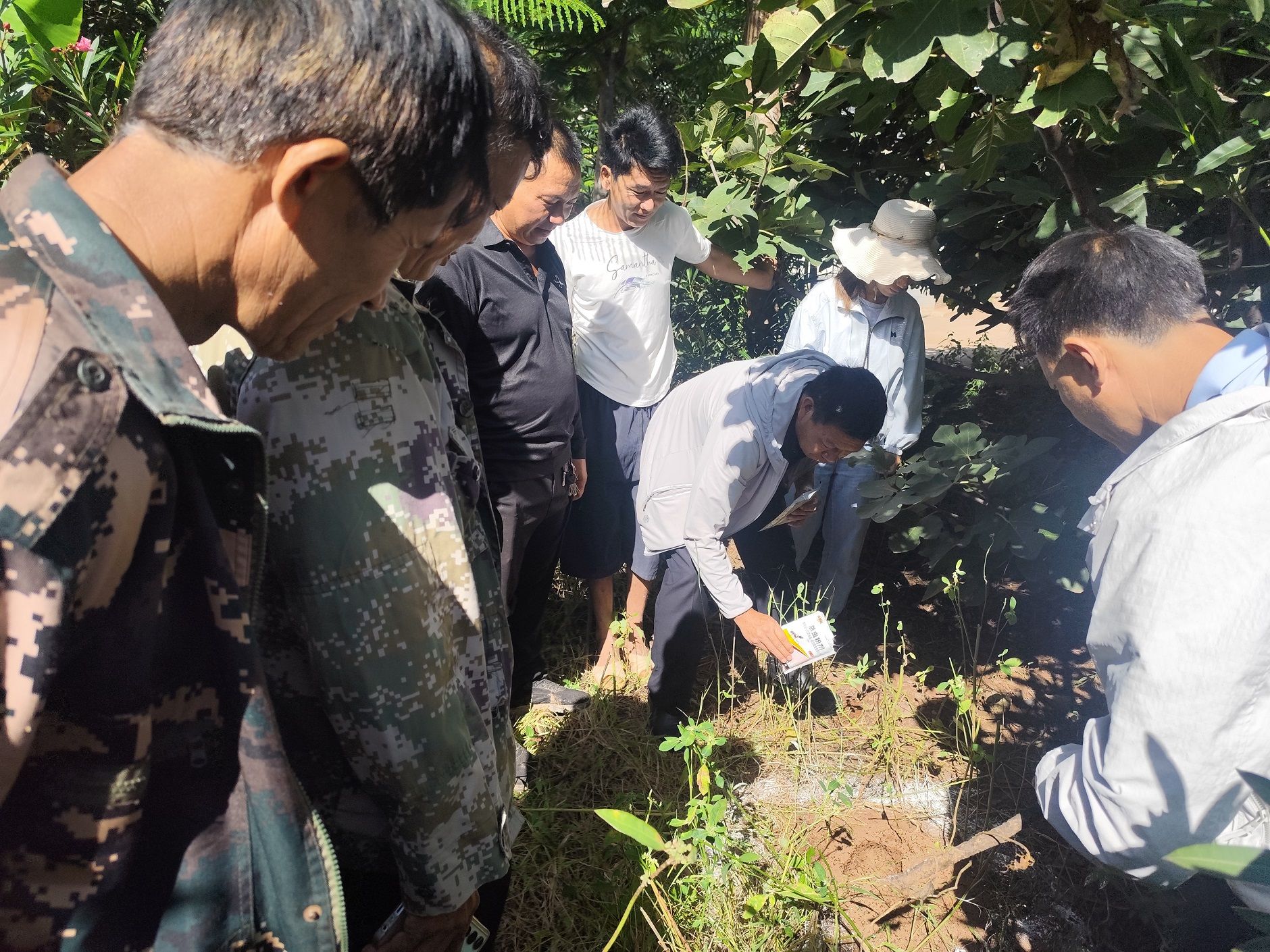 “大家看,发现这种小红蚂蚁千万别用手碰,这就是红火蚁,叮咬后又疼又痒,防控得用专用药剂,撒的时候要离果树根系30厘米……”在白马河村的芒果园里,农业技术人员蹲在地上,指着土壤里的蚁穴,一边演示药剂撒播方法,一边用通俗易懂的乡音俗语讲解。农户们围在身旁,有的拿着笔记本记录要点,有的掏出手机拍摄操作视频,时不时还抛出“药剂多久撒一次”“雨天撒了会不会失效”等问题,农技人员耐心解答,原本略显枯燥的防控知识,在田间实操中变得清晰好懂。