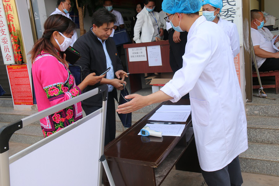 报到现场,井然有序,前来报到的代表们严格落实疫情防控的相关措施,自觉佩戴口罩,自觉扫健康码和行程码,医务人员为他们测量体温,工作人员给他们分发了证件和会议资料等。