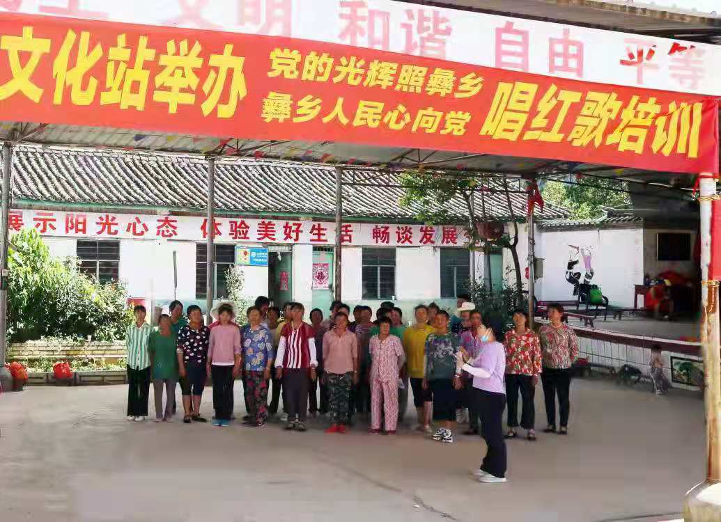 本次培训班县文化馆馆长尹昌泉、综合文化站站长尹丛燕两位老师编导了《红旗颂》、《万疆》、《在希望的田野上》、《彝族韵》、《唱支山歌给党听》、《只留清气满乾坤》、《和谐中国》等舞蹈,并组织学习了“党的光辉照彝乡 彝乡人民心向党” 红歌培训。在县文化馆的全力支持及全体参训人员的共同努力下,培训取得圆满成功。
