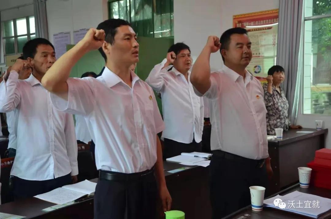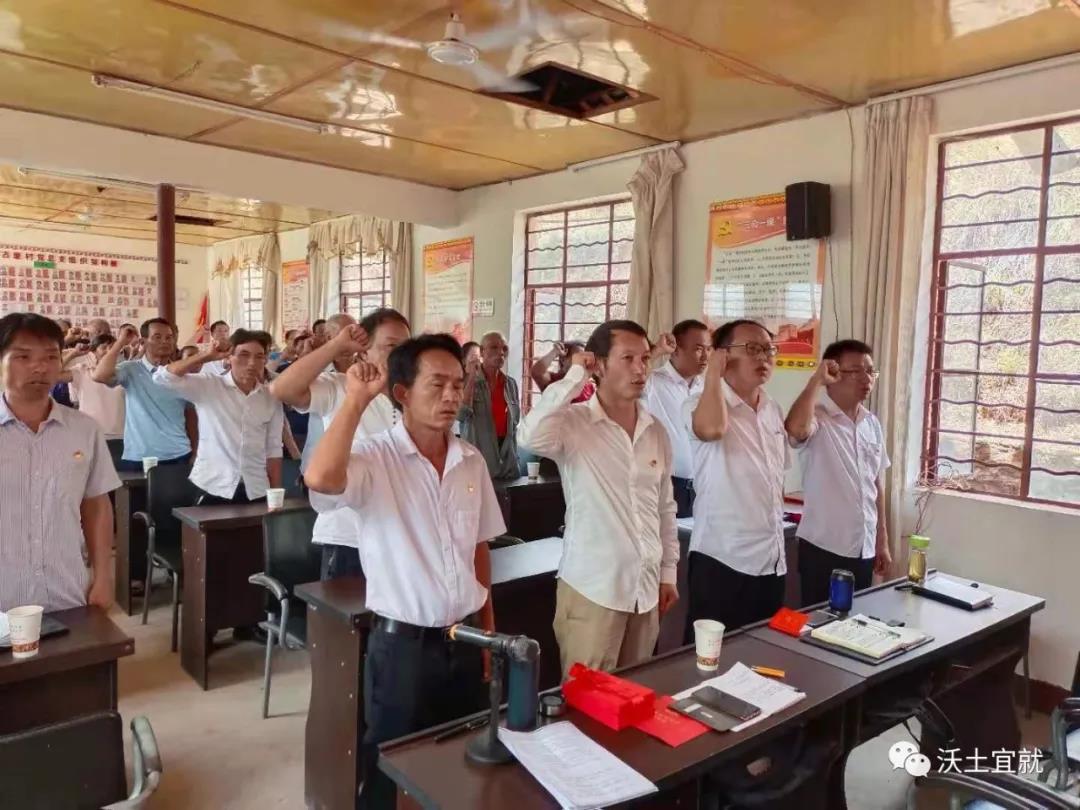 在鲜红的党旗下,各村书记带领全体党员庄严宣誓,重温入党誓词,一字一句吐露着对党的无限忠诚和倾心热爱。